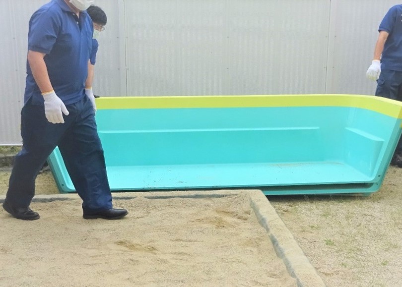 7月から水遊びが始まるのに向けて、大きいプールの設置のために、「一般社団法人 京都府自動車整備振興会」さんが来て下さいました♪