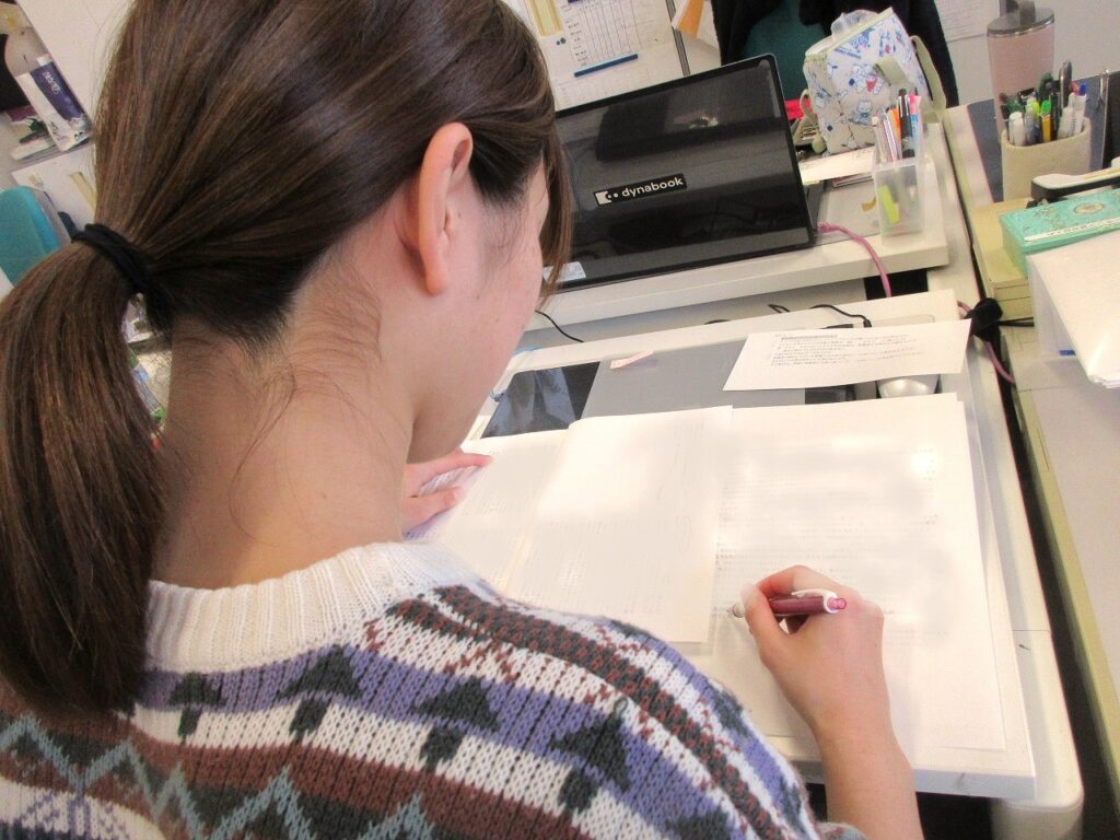 頂いた大切な文章は、保護者の方が書かれた原文のまま、思いをそのまま載せられるように、子ども達と保護者の方を知っている職員皆で手分けし、校正をさせてもらいます。
