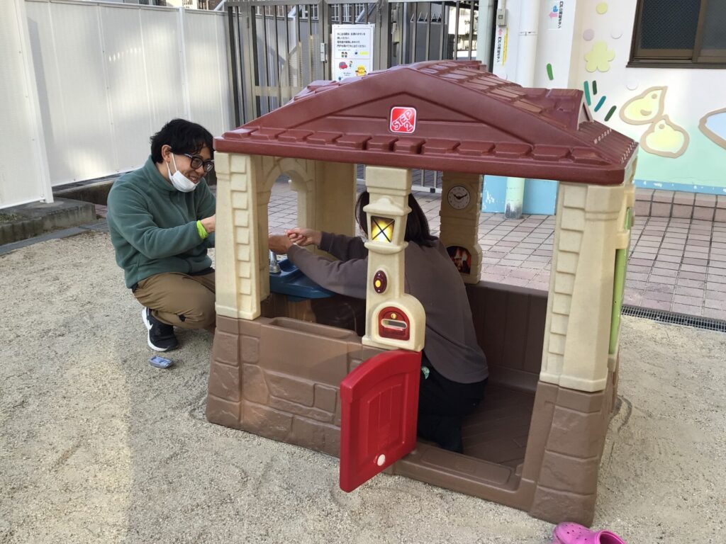 園庭で遊ぶ遊具(リトルコテージ)を購入しました