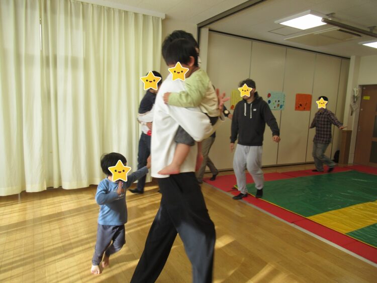 子どもたちの様子を見てもらい、一緒に遊んでもらった後には、お父さんだけの保護者グループもおこない、お子さんやお母さんを大切に思っておられるお気持ちをお話しあう場となりました。