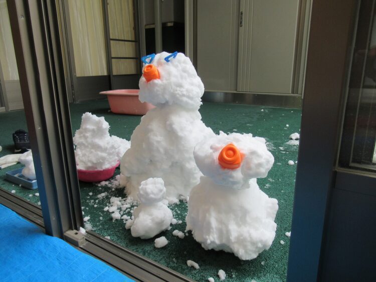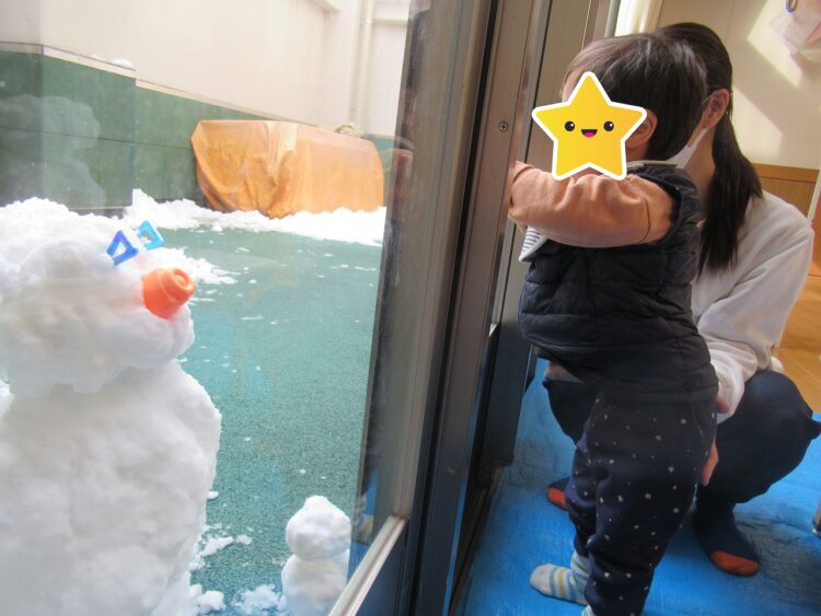 雪の中、なんとか登園してくれた子ども達と園庭で思いっきり雪遊びをしたり、部屋の中で雪に触れる経験をしたりとグループに合わせた冬の楽しみ方が出来ました。