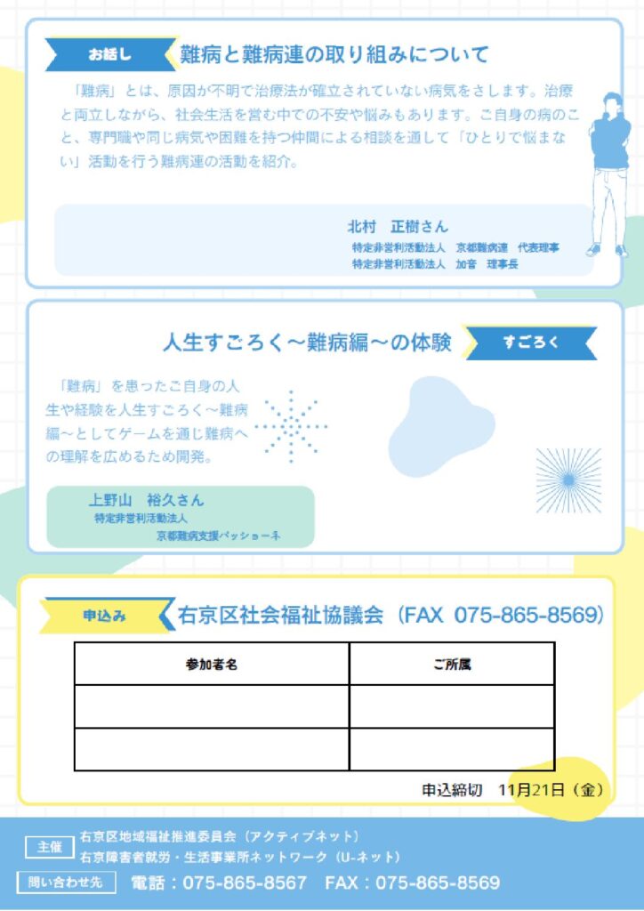 右京区社会福祉協議会のアクティブネットとU-ネットが共催で実施する学習会です。